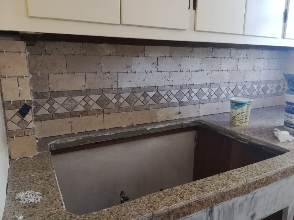 Here’s our backsplash all set and ready for grout!