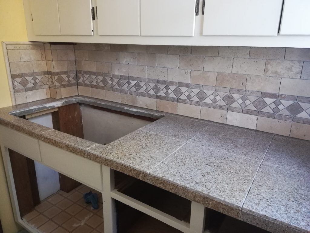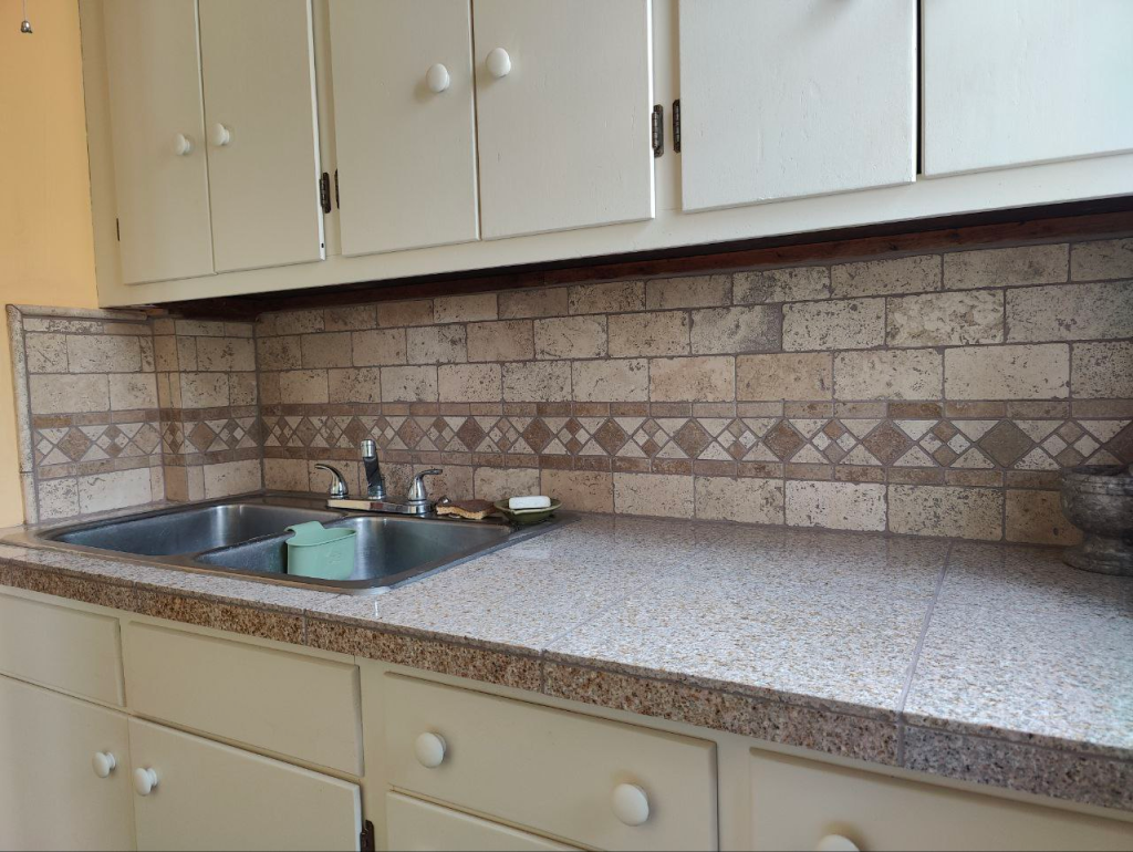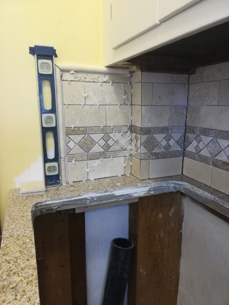 The backsplash which deperately needed tiling!