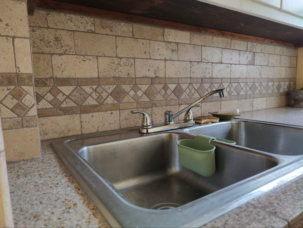 Travertine is extremely porous, so for those who want a nice smooth tile, it’s probably not ideal. The tiles have holes and indentations everywhere, and could easily collect dirt. However, on a backsplash, where tiles don’t get any foot traffic, I think this disadvantage is minimal! Plus, the grout does tend to fill most of these divots once finished.