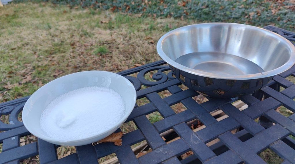 Her are my two bowls outside, ready to be mixed!