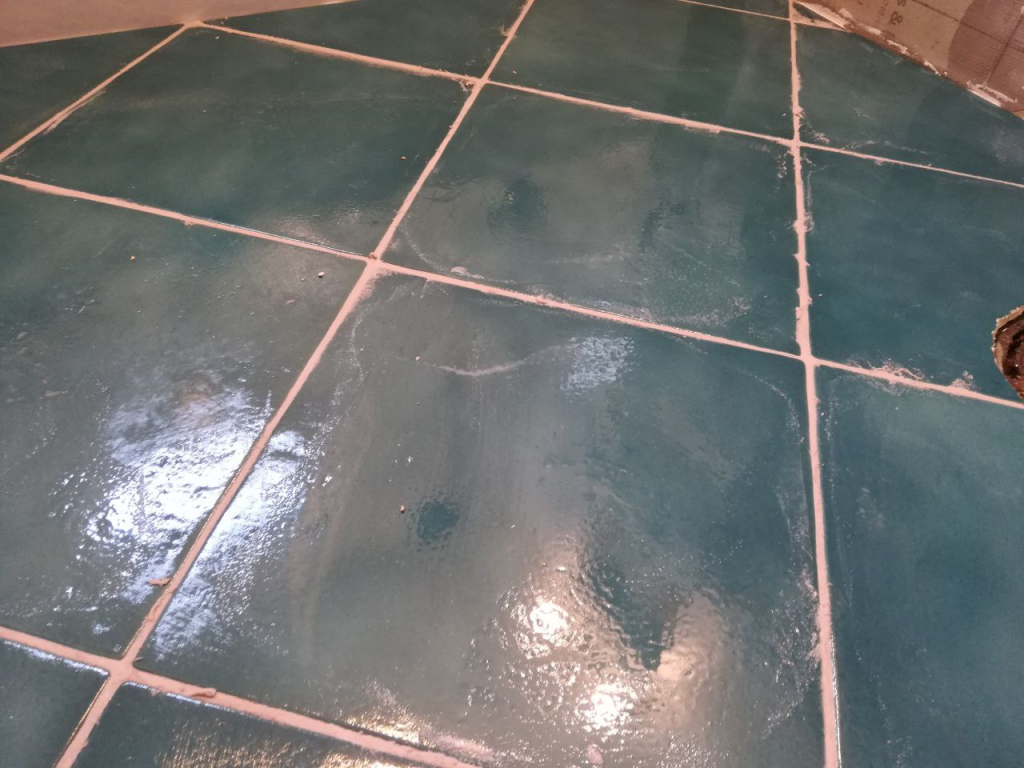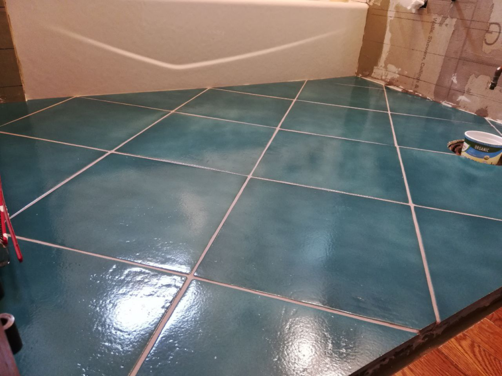 As you grout, fill up the joints nice and full so that you have plenty to work with when you come back to shape them, and make an effort to squeegee grout off the tiles with the float to minimize cleanup (especially the larger tiles). Your tiles should look something like the pictures above once you’re done grouting.