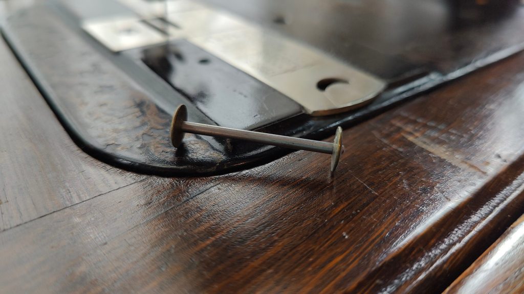 The engineering on this particular machine really amazed me. It must have been an early model, because it still had a shuttle bobbin. If you don’t know what this is, before bobbins simply rotated beneath the machine, their cases actually swung back and forth and were shaped almost like a bullet. See?