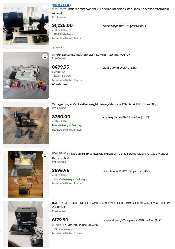 Just look at how much my beloved Singer Featherweight sewing machine goes for on eBay!
