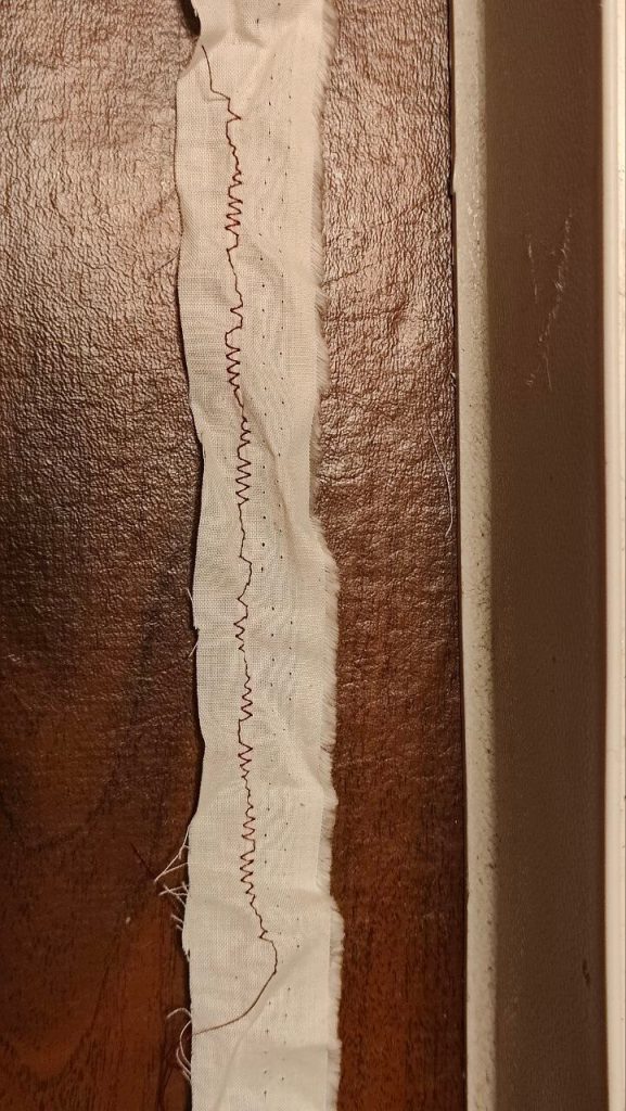 As I wondered what the odds of this were, I began testing the machine. While it did a straight stitch just fine, the zigzag function was all messed up.
