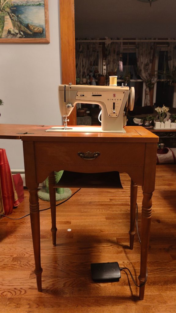 Thankfully, there was a newly-posted sewing machine and table on Craigslist near me! This time, it was a Singer, so I was able to do actual research on it.